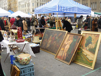 Помимо характерного венского диалекта, понять который в состоянии далеко не каждый живущий, предположим в Северной Германии, в общем хоре торгующих и покупающих слышны громкие, полные эмоций беседы выходцев из Турции, Югославии, Польши. Заметить среди продавцов говорящих по-русски не удалось, однако в толпе покупателей наши соотечественники попадаются. Сведущие люди утверждают даже, что сюда частенько заглядывают в поисках раритетов местные российские дипломаты. Зазорного тут ничего нет: состоятельные венцы тоже не чураются прогулок по этим местам.