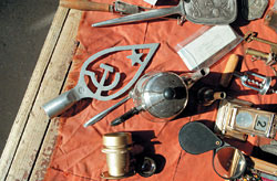 Среди покупателей Измайловского рынка больше туристов. Иностранцы охотно приобретают "советский антиквариат" — медный самовар или сталинскую лампу. Впрочем, еще со времен ликвидации легендарного блошиного рынка на Тишинке сюда стали приходить люди творческих профессий: художники-декораторы и художники по костюмам. Торговцы "милитари" ради этого, похоже, лишний раз изучили историю страны.