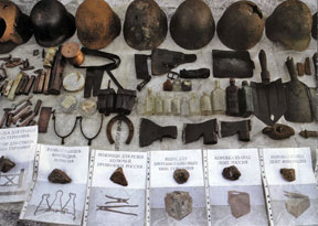 Военная тематика - самое серьезное предприятие барахолки. Ржавые дырявые каски, обожженные солдатские фляги, россыпь гильз любого калибра. Это для специалистов, серьезных коллекционеров, постоянных клиентов. Некоторые вещи не выставляются на прилавок, и выбирать их предлагается по фотоснимкам, например, остатки боевой техники времен Великой Отечественной.